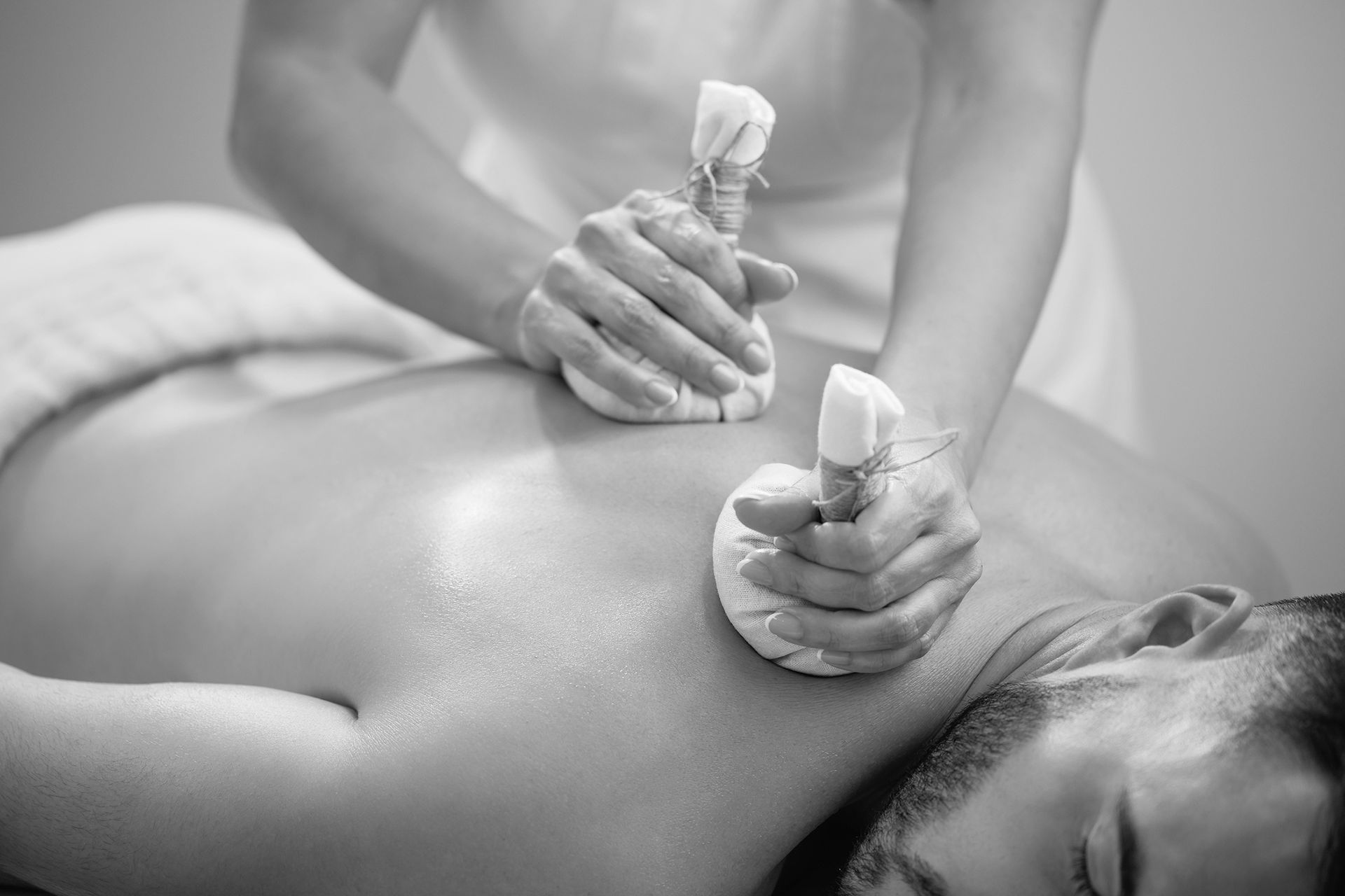 Massage aux tampons aux herbes